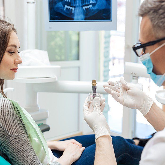 The first part of the treatment is to determine if dental implants are an ideal option for you. While most adults who are missing one or several teeth can be eligible for the procedure, you’ll need to have good oral health before beginning. If you’re struggling with issues like tooth decay, gum disease, and/or insufficient jawbone density, then you’ll need to get them addressed to ensure a successful process. Our team will work to get your smile back to health before moving forward. Once you’re ready for dental implants, we can walk you through the details of your plan, including the cost and timeframe, so you know what to expect.